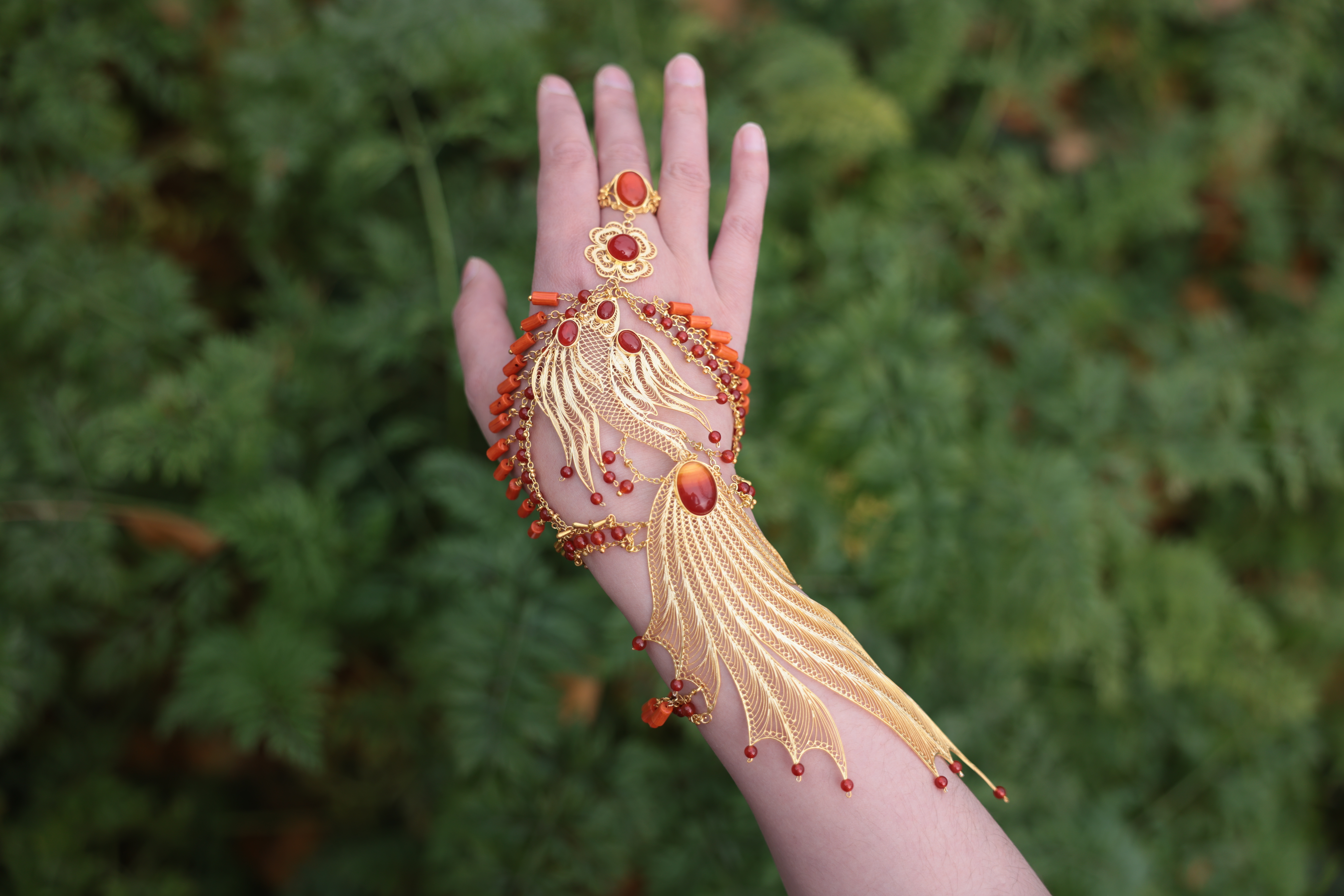 回忆起这次合作的缘起,雁鸿的语气里仍带着惊喜:“是因为活动方邀请我们去参加活动,当时想让我复刻一个龙葵的头冠。我本来就非常喜欢龙葵这个角色,就接受了。”但更令她惊喜的是,还能亲手将这份礼物送给饰演龙葵的演员刘诗诗。“这个是让我非常开心的事情。”雁鸿说。