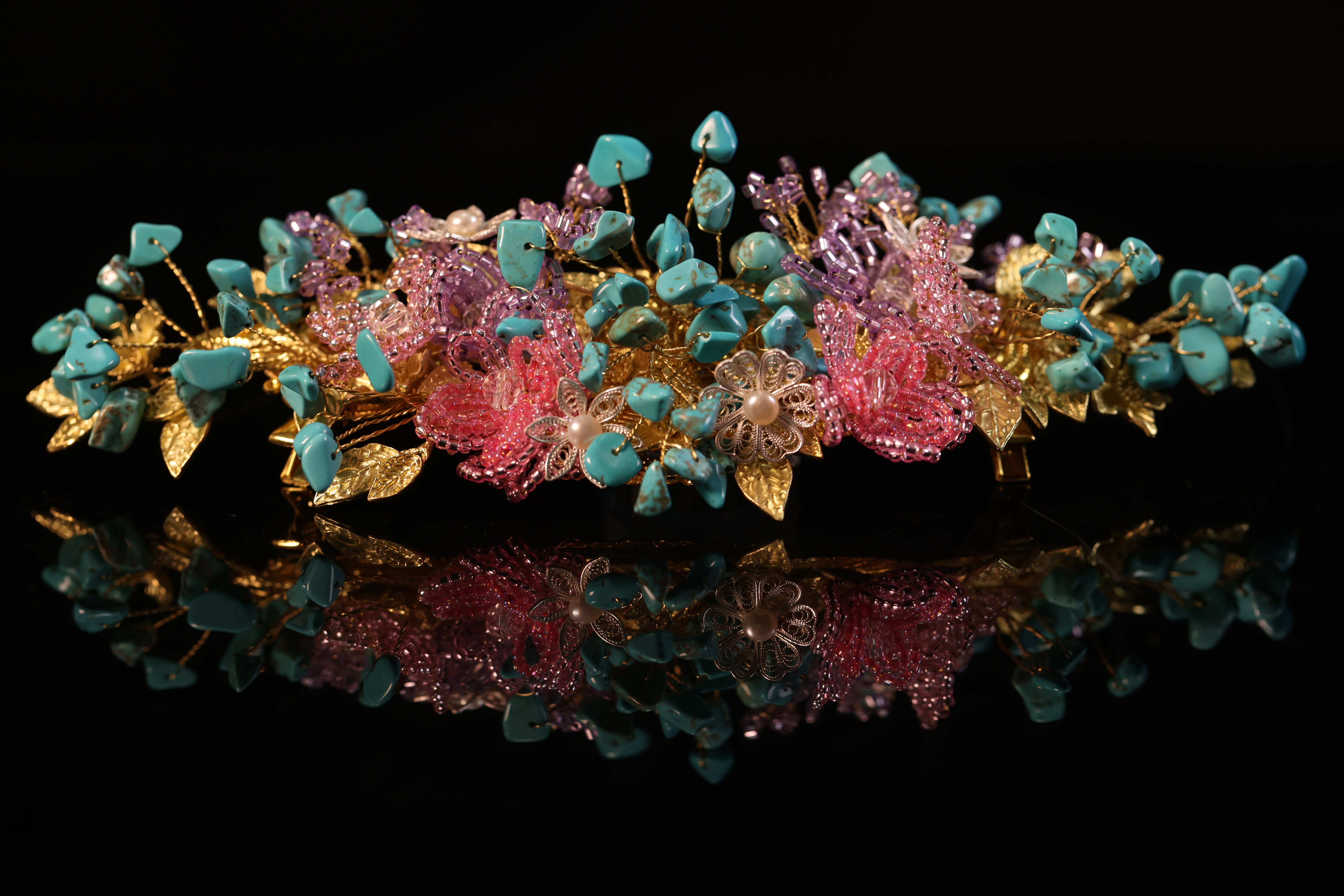 雁鸿复刻的闹蛾扑花头饰